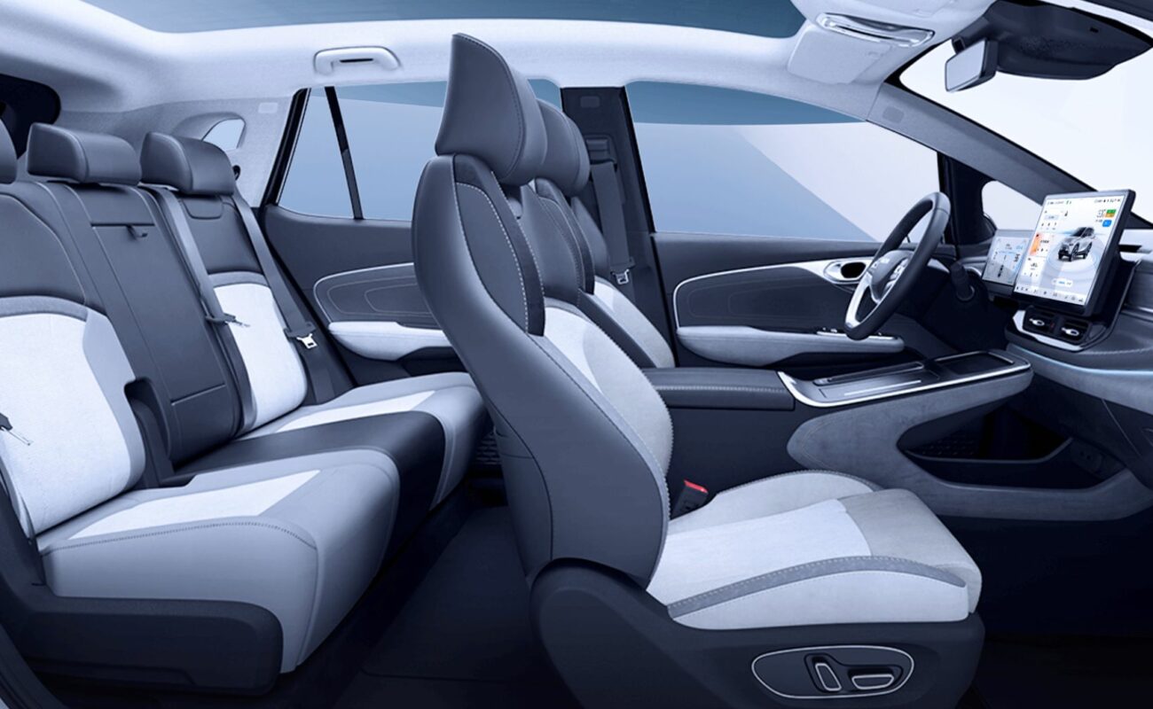 The interior is based on a traditional symmetrical design, featuring a rectangular instrument panel with a 14.6-inch central control screen. The vehicle's operating system comes from GAC's ADiGO 5.0 system and supports CarPlay, HiCar and CarLife. ADiGO Sense AI model is also presented.